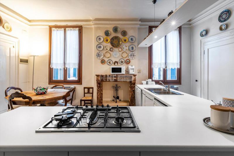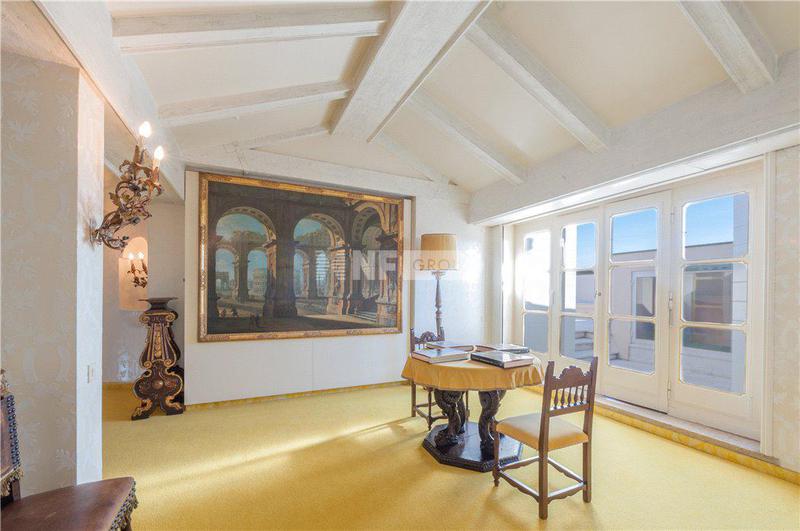 Современные элегантные апартаменты расположены на втором этаже старинного здания на площади Сан-Марко в Венеции. Апартаменты включают прихожую, просторную и светлую гостиную, две кухни, три спальни, кабинет, 4 ванные комнаты и 2 террасы площадью 50 и 15 кв. м.