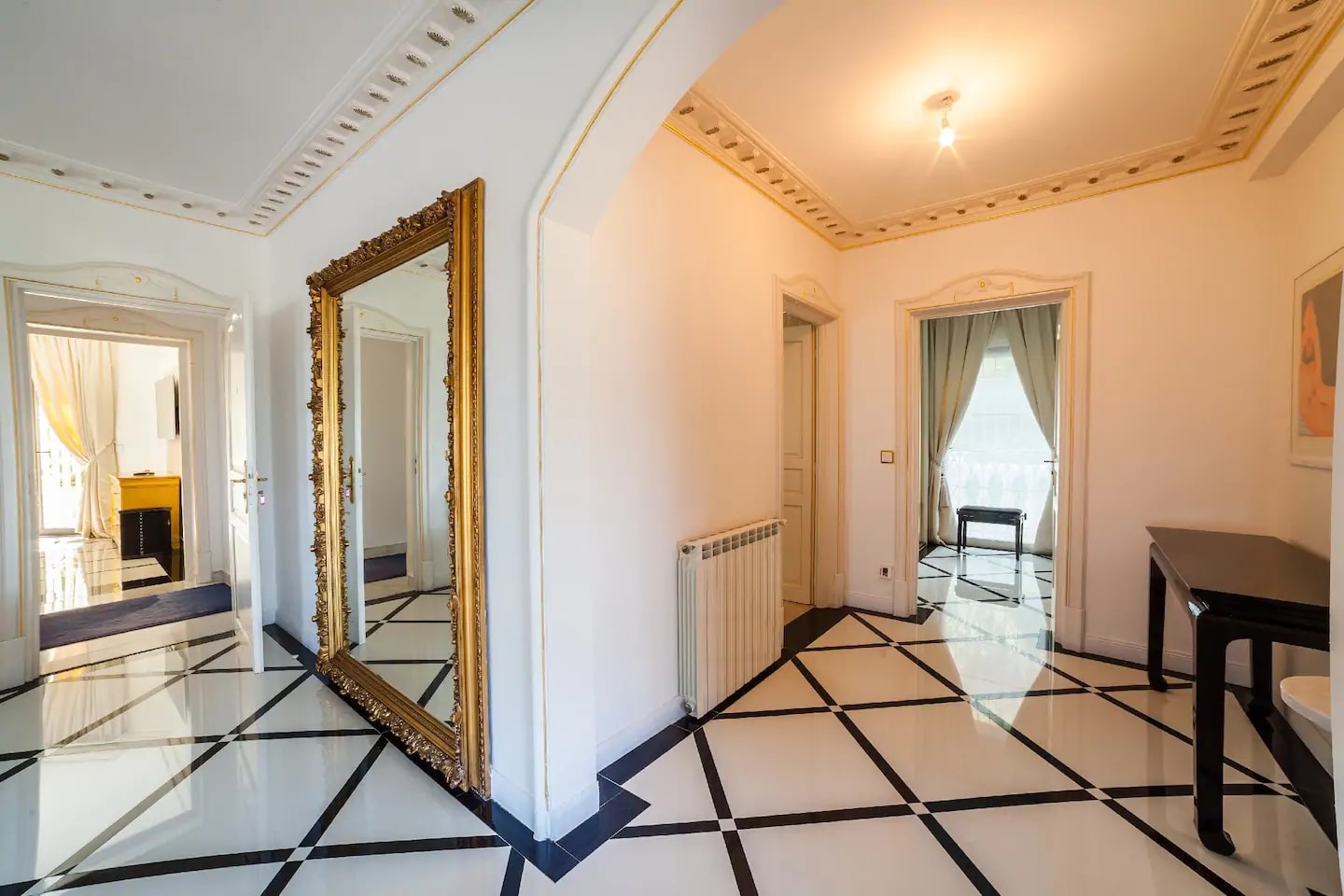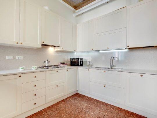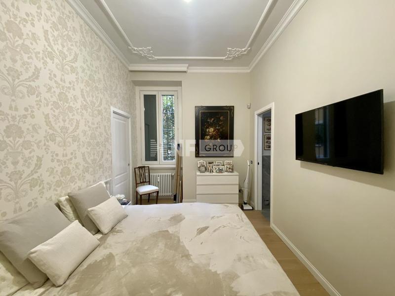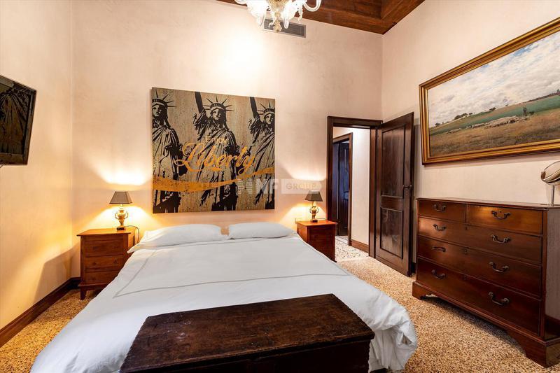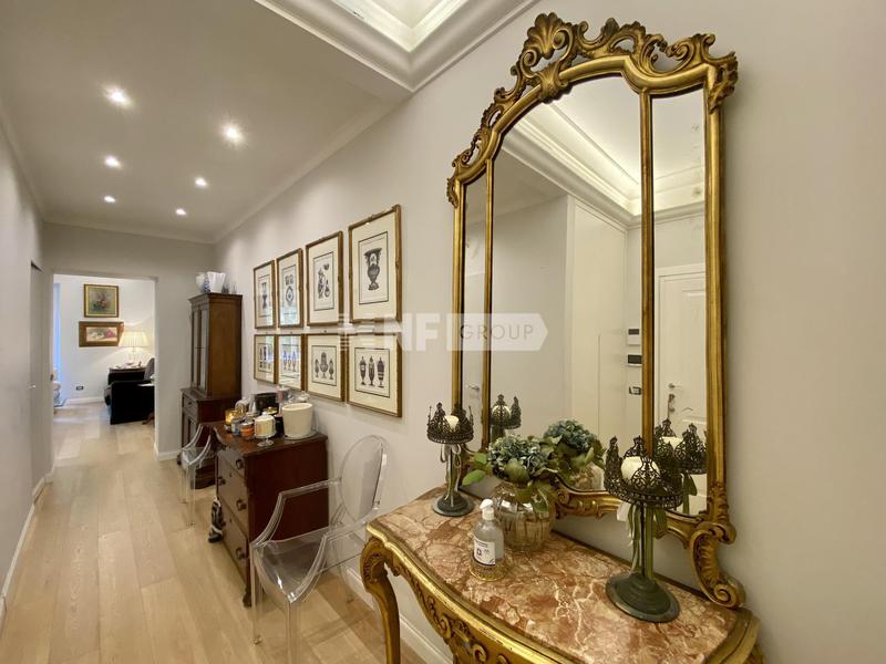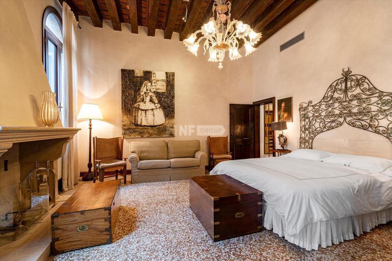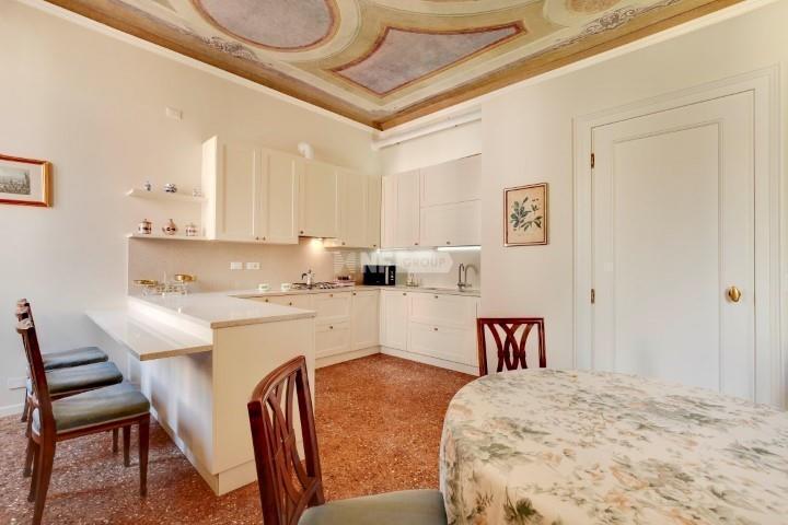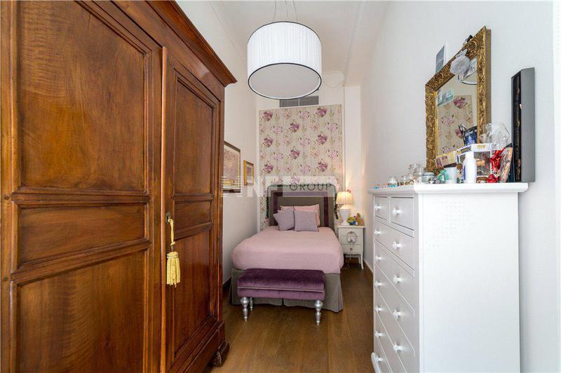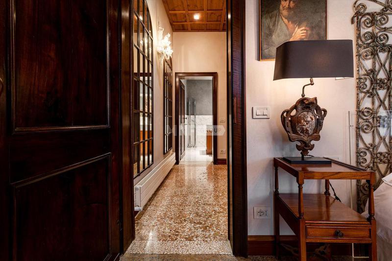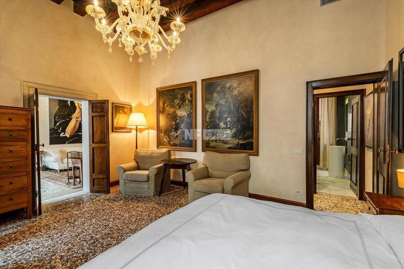 В квартире есть великолепная и просторная гостиная со стенами и потолком, украшенными лепниной и люстрами из муранского стекла. Она состоит из двух спален с двуспальными кроватями и третьей главной спальни со смежной ванной комнатой с видом на тихий внутренний двор, а также еще двух ванных комнат и коридора, разделяющего гостиную и спальную зоны. Красивая и современная кухня украшена изысканным мраморным обрамлением оригинального камина.
