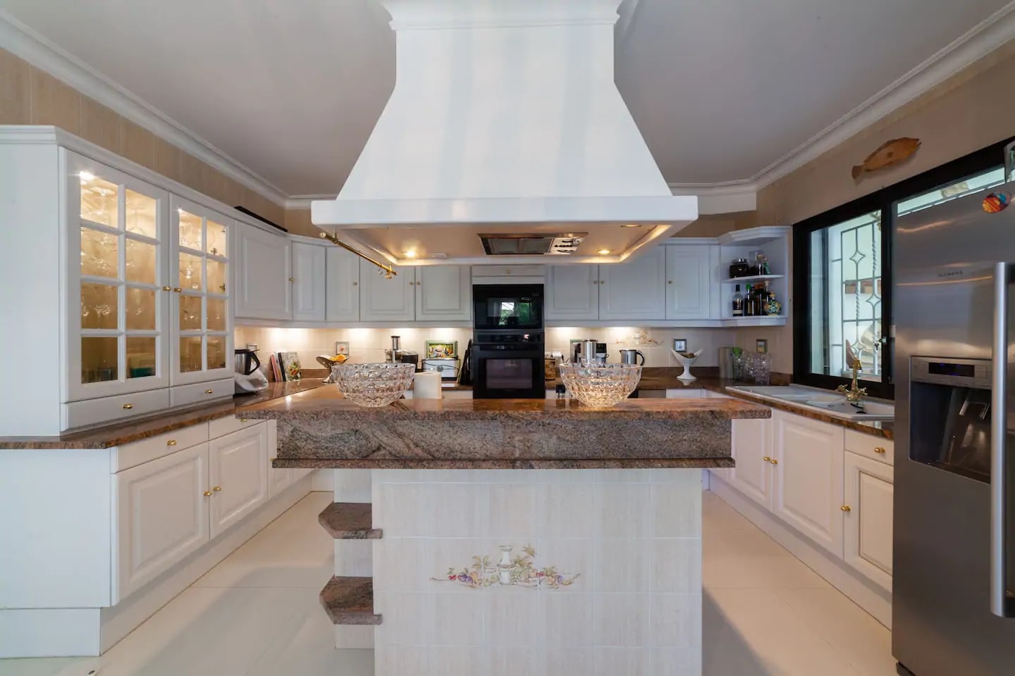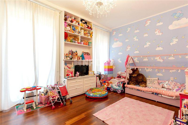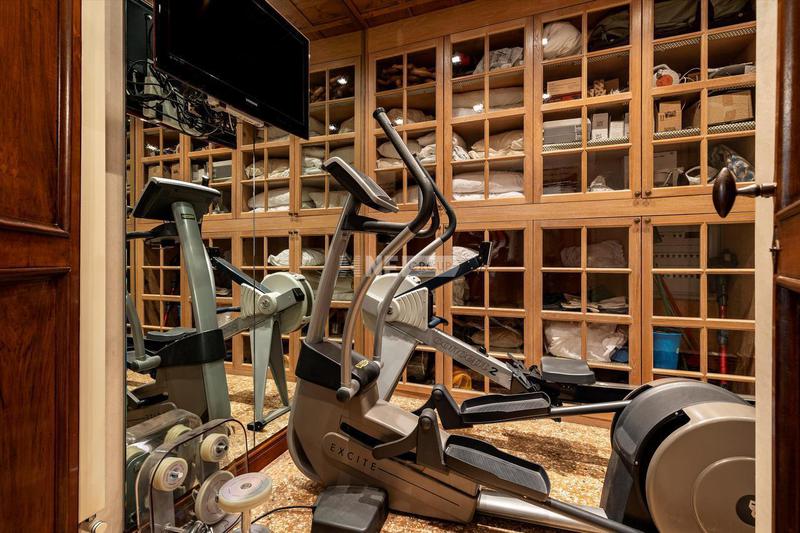 На первом этаже расположена просторная прихожая и светлая гостиная. Апартаменты разделены на два крыла, где расположена просторная кухня, столовая, основная спальня с ванной комнатой, прачечная, 3 спальни и 3 ванные комнаты. Элегантная лестница ведет на второй этаж, где расположены две спальни, две ванные комнаты, просторная зона отдыха и тренажерный зал.
