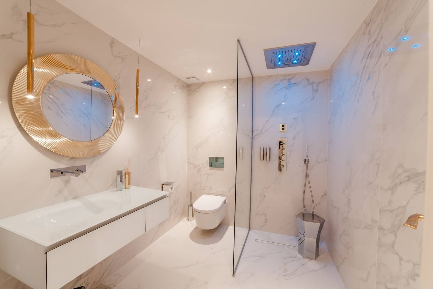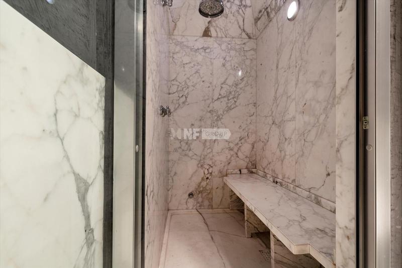 Квартира, недавно отреставрированная, состоит из четырех больших спален с двуспальными кроватями, две из которых с видом на канал, трех роскошных ванных комнат, отделанных мрамором, библиотеки и небольшого тренажерного зала. В главной спальне есть большой камин, проходная гардеробная и собственная ванная комната с паровой баней. Просторная кухня оснащена первоклассной бытовой техникой, включая винный холодильник с регулируемой температурой.