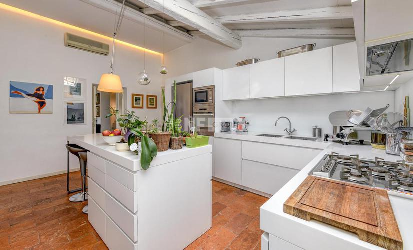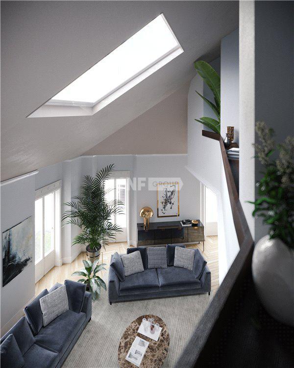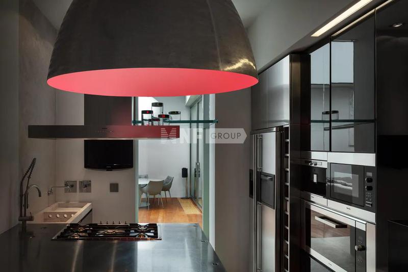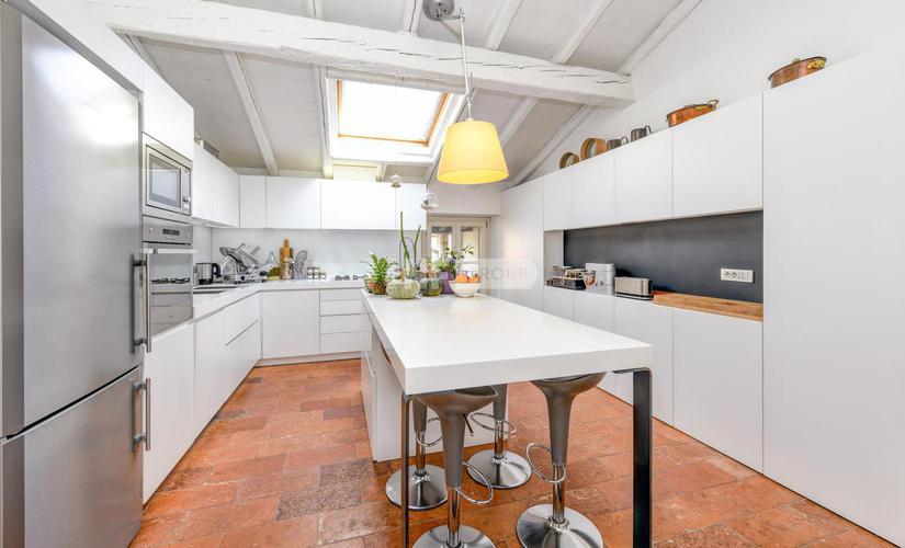 Квартира имеет отдельный вход, который ведет в большую гостиную с потолками высотой 5,10 метра, оснащенную различными мансардными окнами, которые гарантируют исключительное естественное освещение. Жилая зона включает в себя современную кухню, гостевую ванную комнату и удобную прачечную. Отделка высочайшего качества создает изысканную и комфортную среду.