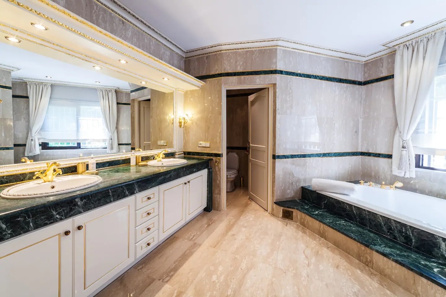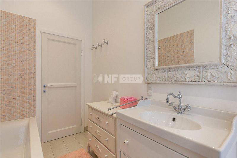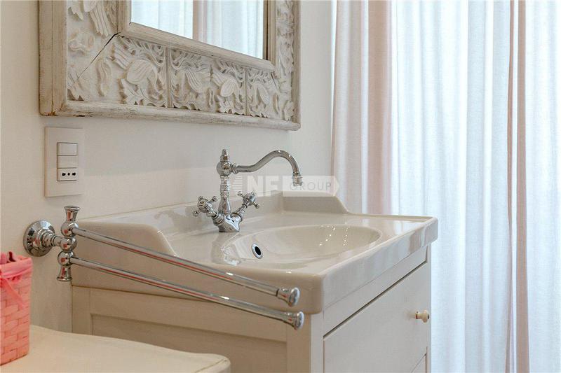 Апартаменты состоят из просторной и светлой гостиной с балконом, кухни с балконом, спальни, основной спальни с гардеробной и трех ванных комнат, одна из которых используется как прачечная.