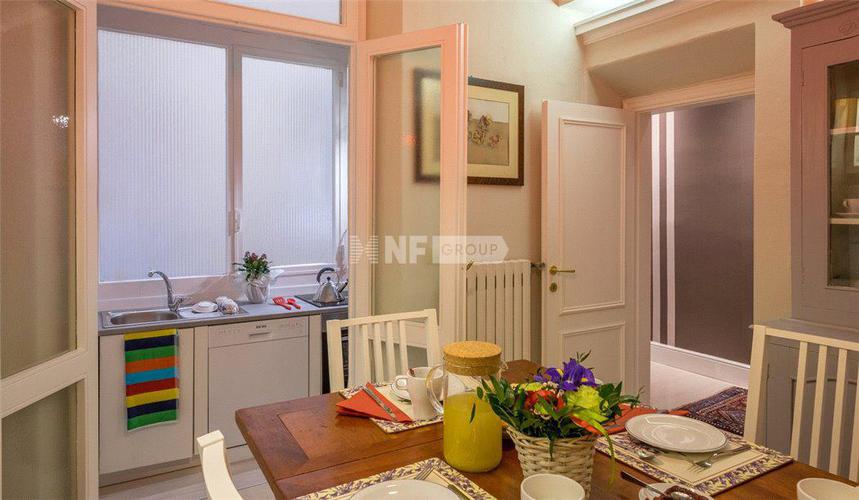 Элегантные апартаменты расположены на центральной улице во Флоренции, рядом со станцией, магазинами, роскошными отелями, знаменитыми ресторанами и музеями. Апартаменты разделены на две части. Основная часть площадью 180 кв. м включает гостиную с камином и балконом, совмещенную со столовой, кухню, 3 спальни, гардеробную, 2 ванные, турецкую баню, джакузи и прачечную. Вторая часть апартаментов площадью 100 кв. м включает кухню с выходом на веранду, две спальни и ванную. Возможно объединение апартаментов. Дом оснащен лифтом. Техническое оснащение апартаментов включает кондиционирование воздуха, сигнализацию, подогрев пола.